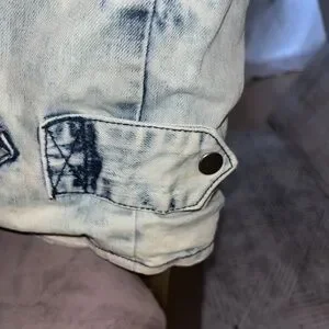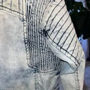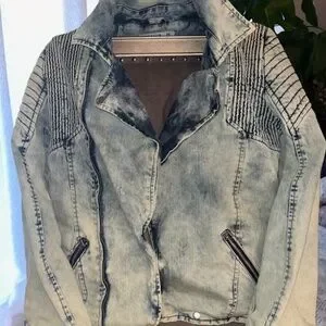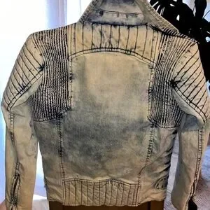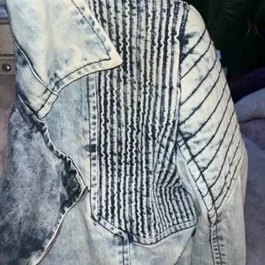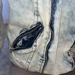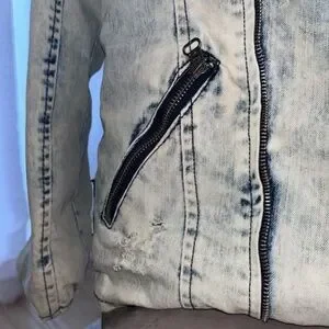 This 80s vintage denim jacket is timeless and will transport you back to the 80s. Made from high-quality cotton, this mid-length bomber jacket comes in an acid-washed blue color and features a stand-up collar, off-center zip, and logo accents. The jacket is perfect for any occasion, whether traveling, going to a party, or running errands.