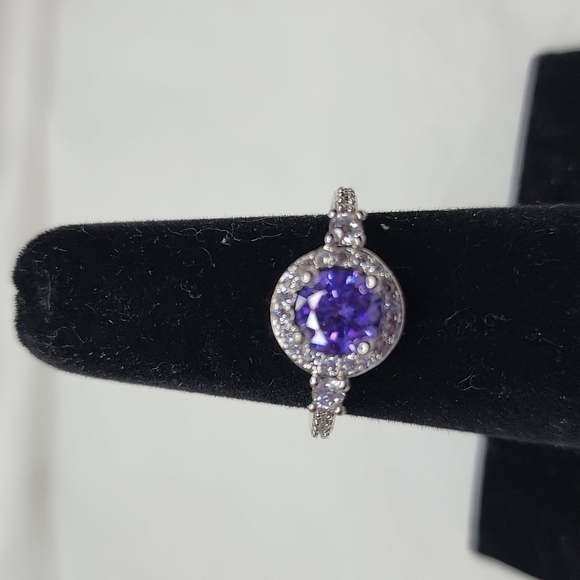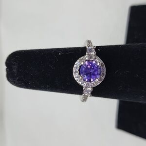 💜 14kt White Gold Plating Lab Created Alexandrite Halo Engagment Ring 💜