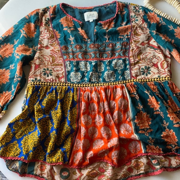 Label RITU KUMARStunning and Blouse Gorgeous paneling detail beautiful structure three-quarter sleeve Peplum Style side Multicolor Tassel Detail size large
