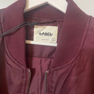 LABEL Unisex Go To Burgundy Bomber Jacket Double Zipper Lots of Pockets