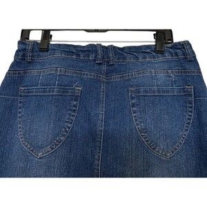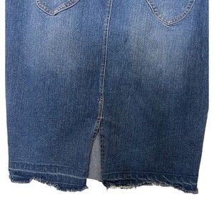 LABIJOU Plus Women's Blue Denim Dark Wash knee length Pencil Raw Hem Distressed Stretch Skirt