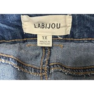 LABIJOU Womens Blue Denim Dark Wash knee length Pencil Raw Hem Skirt Plus 1X