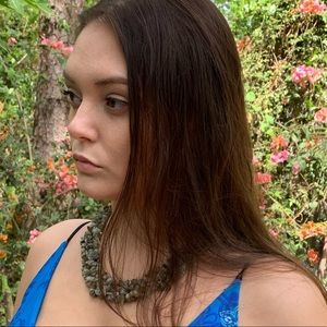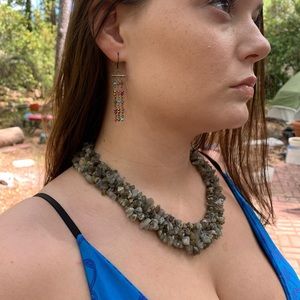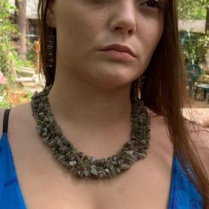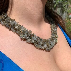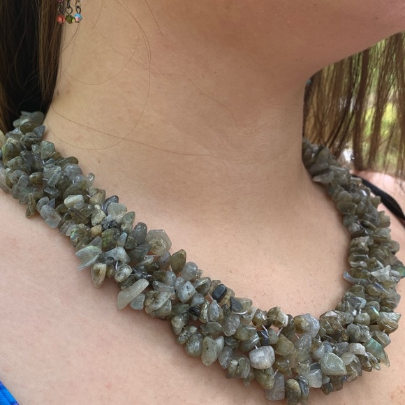 LABRADORITE Necklace made of pieces in the rough into an inch and a half thick and 19 inches long necklace with lobster clasp the stones fight off an existential crisis this is a magical stone keeps us link to our spirit world where anything is possible 🎈