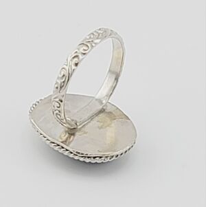 beautiful Labradorite round ring with a beautiful embossed ring band handmade in .925 Sterling Silver metal size 8.5