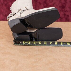 LABUCQ Women Waymore Ivory Leather Moto Biker Harness Boots sz 5US EUR35