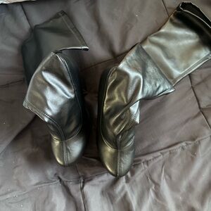 Step out in style with these sleek black platform knee-high boots. Perfect for adding a bold touch to any outfit.