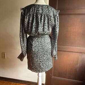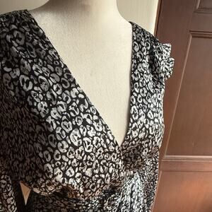 L'ACADEMIE Black and White Joyce Leopard Satin Tulip Hem Faux Wrap Dress Small