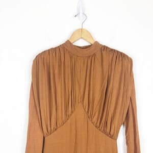 $248 L'ACADEMIE Kemia Maxi Dress Small Brown Jersey Long Sleeve Gown
