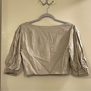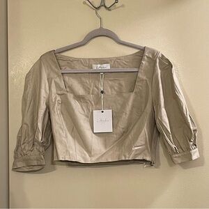 L'ACADEMIE Linen Blend Puff Sleeve Cropped Corset Blouse