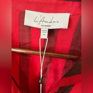 L’ACADEMIE NWT The Laramie Mini Dress Linen Red & Black Stripes Sz XXS $188 MSRP