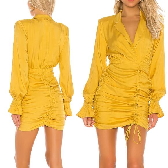 L'ACADEMIE 'Nichole' Mustard Yellow Long Sleeve Ruched Mini Dress SMALL