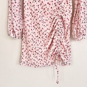 L’ACADEMIE Ruched Floral Long Sleeve Mini Dress in Pink
