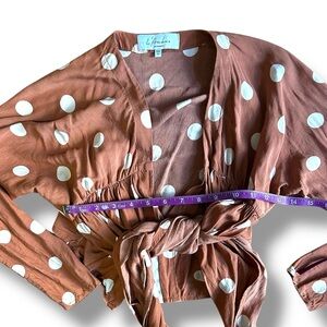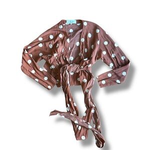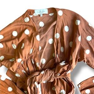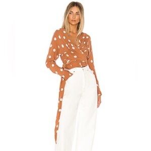 L’ACADEMIE THE LYDIE TOP in Rust & Ivory Polka Dot Size XS Revolve Wrap Top