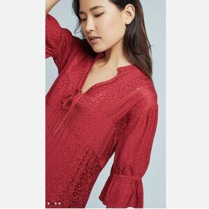 LACAUSA Anthropologie Imelda Raspberry Red Silky Tiered Midi Dress