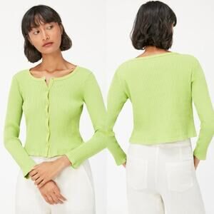 LACAUSA Bright Lime Green Ribbed Knit Stretch Lucy Crop Cardigan Small