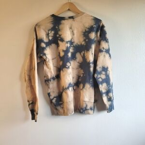 LACAUSA, Tie Dye Crewneck Soft Fleece Sweatshirt, Blue and Light Tan, Size Small.