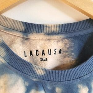 LACAUSA, Tie Dye Crewneck Sweatshirt, Blue and Light Tan, Size Small