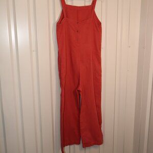 LACAUSA Womens Linen Cotten Rust Red Jumpsuit Back Button Sleeveless Size Med