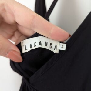 LACAUSA black cotton t-back lightweight flowy minimalist midi dress