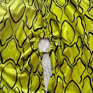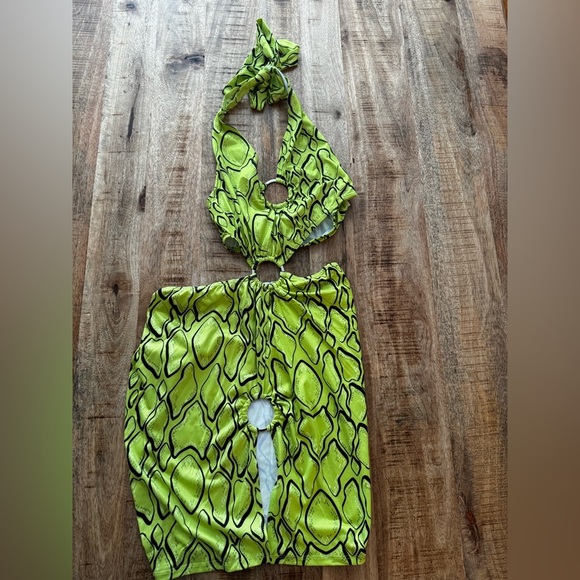 LACAUSA small Neon yellow green animal reptile print halter swim mini dress NWOT