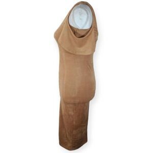 LAC BLUE CAMEL FAUX SUEDE BODYCON COLD SHOULDER MIDI DRESS SZ.S NWOT. GORGEOUS DRESS IN NEW WITHOUT TAG CONDITION.