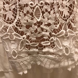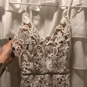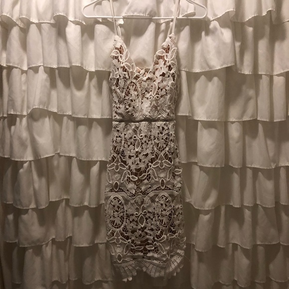 White floral lace over a nude under dress goes past the knees worn for 2 hours