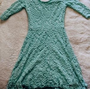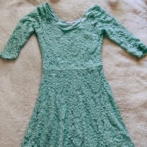 Only worn once! Seafoam green, lacy Charlotte Russe dress. The sleeves come a quarter way down. Super comfortable!