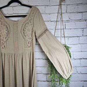 LACE FRONT BOHO STYLE DRESS BY SOIEBLEU TAN LONG SLEEVE SIZE MEDIUM