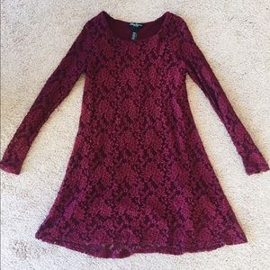 THIS NEEDS TO GO ACCEPTING ANY OFFER!!! Really cute lace maroon dress! Perfect for fall. Very classy. The sleeves are all lace, and the dress is too but it has a maroon slip underneath so it's not see through. Very comfortable, only worn once. (Not from free people)