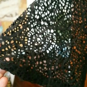 The bust measures at 42" and the lace and fabric has a soft stretch , OK