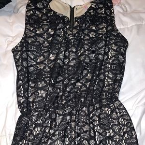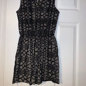 Black lace romper with pockets and zipper in back