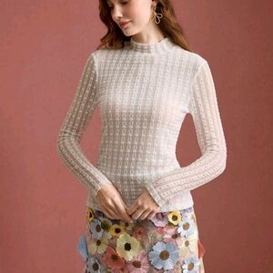 LACE TEXTURED SEMI SHEER T-SHIRT