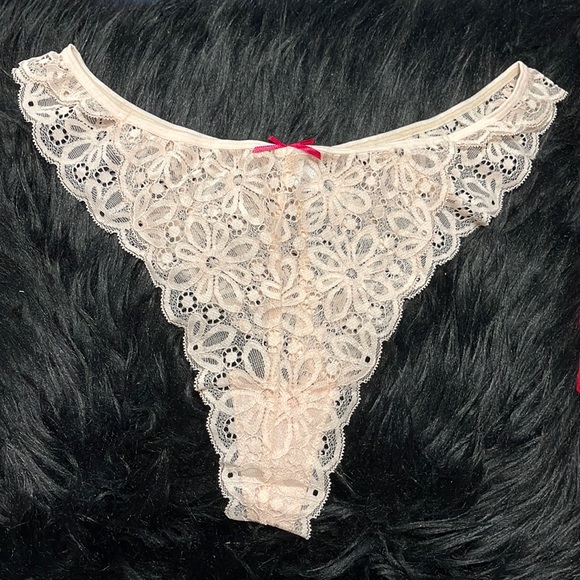 Nude lace thong