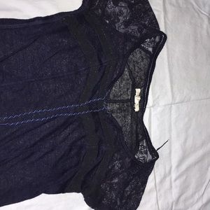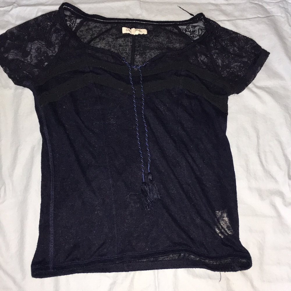 Sheer, American Eagle navy blue dressy/casual shirt. Leave detail and tie in front