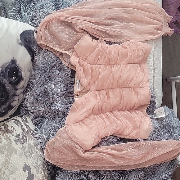 lace Top with bodice off the shoulders see through long sleeves.