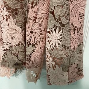 LACE ZiP UP JACKET. MAUVE, PINK AND TAUPE IN COLOR. XL.