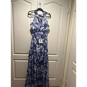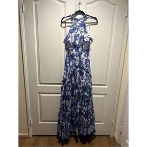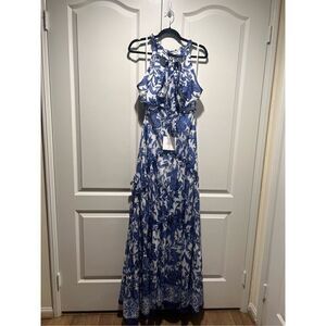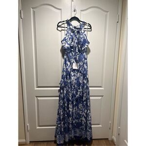 LACE the Label Blue Floral Ruffled Cut Out Maxi Dress Vacation size S NWT $490