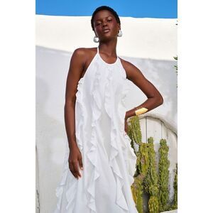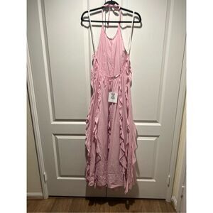 LACE the Label Pink GAIA FRILLS open back Maxi Dress Vacation size S NWT $590