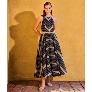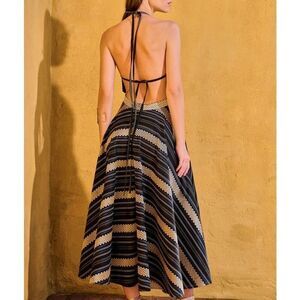 LACE the Label White gold jacquard Midi Halter Dress Vacation size S NWT$590