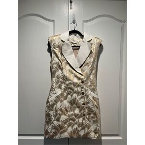 LACE The Label Gold Brocade Cape Sleeve Blazer Mini Dress Size S NWT$490