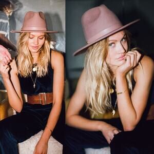Tags: mauve, pink, dusty pink, wool hat, wool, fedora, festive, festival, music, concert, fall, spring, summer, winter, coastal cowgirl, boho, bohemian, cottagecore, classic, old money, quiet luxury, contemporary, minimalism, elevated, capsule wardrobe, modern