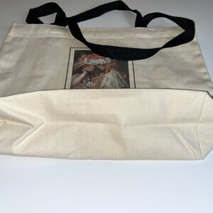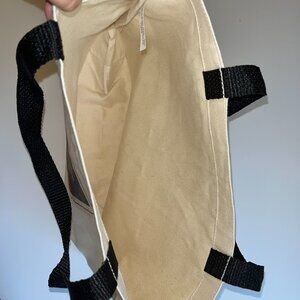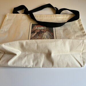Approx: 15.5" across x 12" tall x 4" wide, 1" wide shoulder straps, w/8" opening. Gemline, made in Pakistan.