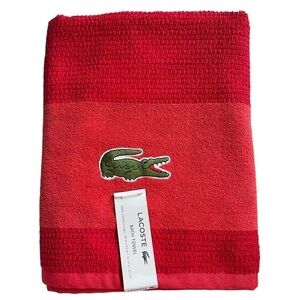 LACOSTE Bath Towel Red 100% Cotton 30”X 52” Large Crocodile NWT