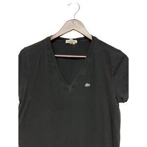 LACOSTE Black V Neck Short Sleeve Tee Shirt T-Shirt 100% Cotton Men's Size 44 L