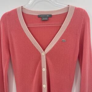 LACOSTE Cashmere Cardigan Womens Size 34 / US Size 2 Pink Preppy V-Neck Sweater