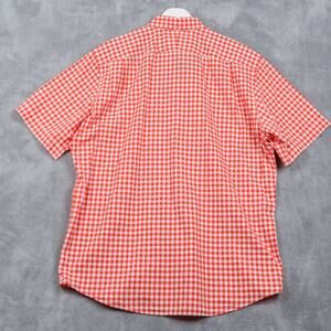 LACOSTE Classic Fit Gingham Check Button Down Shirt Short Sleeve Red Mens 43 XL