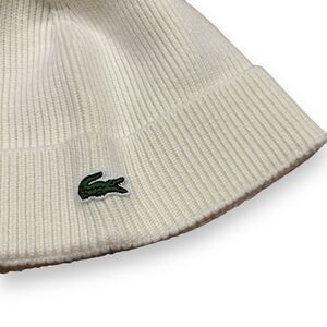 LACOSTE MEN & WOMEN LOGO BEANIE CUFFED HAT SKULL CAP 100% WOOL ONE SIZE NWOT