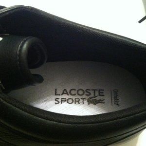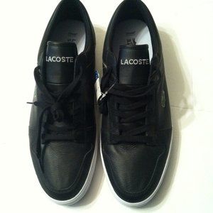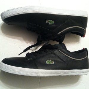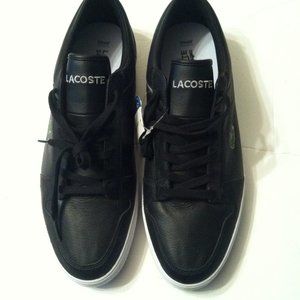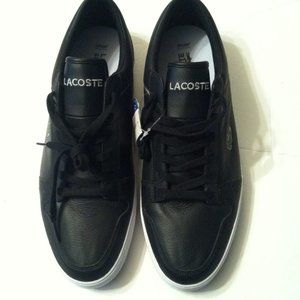 LACOSTE MENS NEW BLACK LEATHER FASHION SNEAKERS SIZE: 11.5