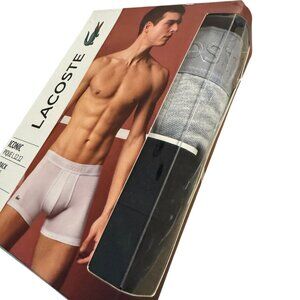 LACOSTE Men’s 2 Pack Iconic Pique Trunks Boxers Gray Black Size XL Supima Cotton