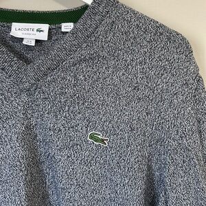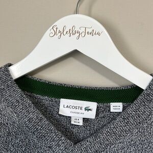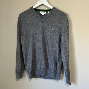 LACOSTE Mens V Neck Cotton Sweater Classic Fit Marled Jersey Grey Sz M